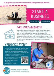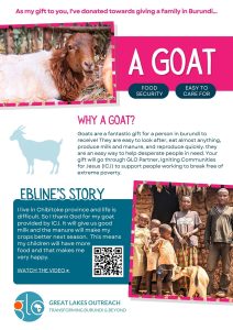 So much money is spent on gifts for people (like ourselves) who already have everything they need, and that’s why we’re offering this opportunity to make a very substantial, even life-changing transformation in precious Burundian lives through creative gifts that will keep on ‘giving’ through the coming year and beyond.