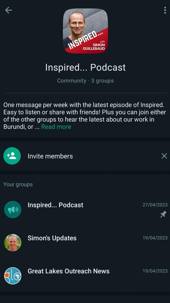 We’ve opened a WhatsApp Community for Inspired. As well as the weekly links we’ll send out, there is also an opportunity to get updates from Simon, and from Great Lakes Outreach.